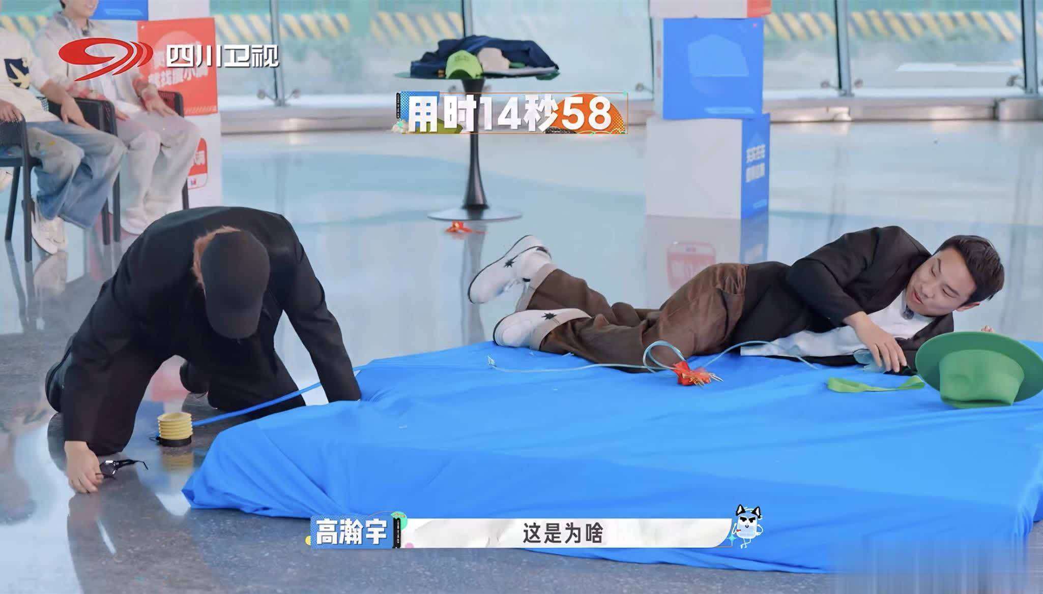 进入追车猜台词环节时,徐志胜负责追车,对坐在车上、戴着耳机的高瀚宇说:没有物质的爱情,像一盘散沙。为了形象,徐志胜还在手掌上多次吹气,但高瀚宇根本没理解,以为他在吹羽毛或抓东西。结果,高瀚宇一个字都没猜对,反而离谱地猜成孙悟空变毫毛把你捧在手心怕你化了,台词与原文相差十万八千里,默契几乎为零。