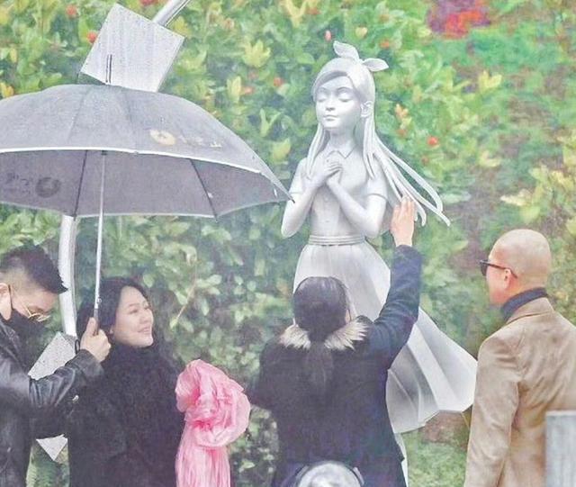 2月2日,大S去世一周年。具俊晔为她设计的纪念雕像在金宝山举行揭幕仪式,虽说现场下着大雨,不过,S妈,小S、具俊晔还有大S的一些朋友都有到场。